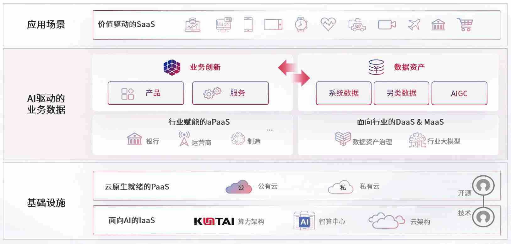 数字时代,,,围绕企业数字化转型的关键要素,,,NO钱包数码开创性的提出数云融合战略和技术体系框架,,,着力在云原生、、数字原生、、AI原生和信创产业上架构产品和服务能力,,为处在不同数字化转型阶段的快消零售、、、、汽车、、、、金融、、医疗、、、、政企、、、、教育、、运营商等行业客户提供泛在的敏捷IT能力和融合的数据驱动能力,,,,构建跨界融合创新的数字业务场景和新业务模式,,,,助力企业级客户建立面向未来的核心能力和竞争优势,,全面推动社会的数字化、、、智能化转型升级。。